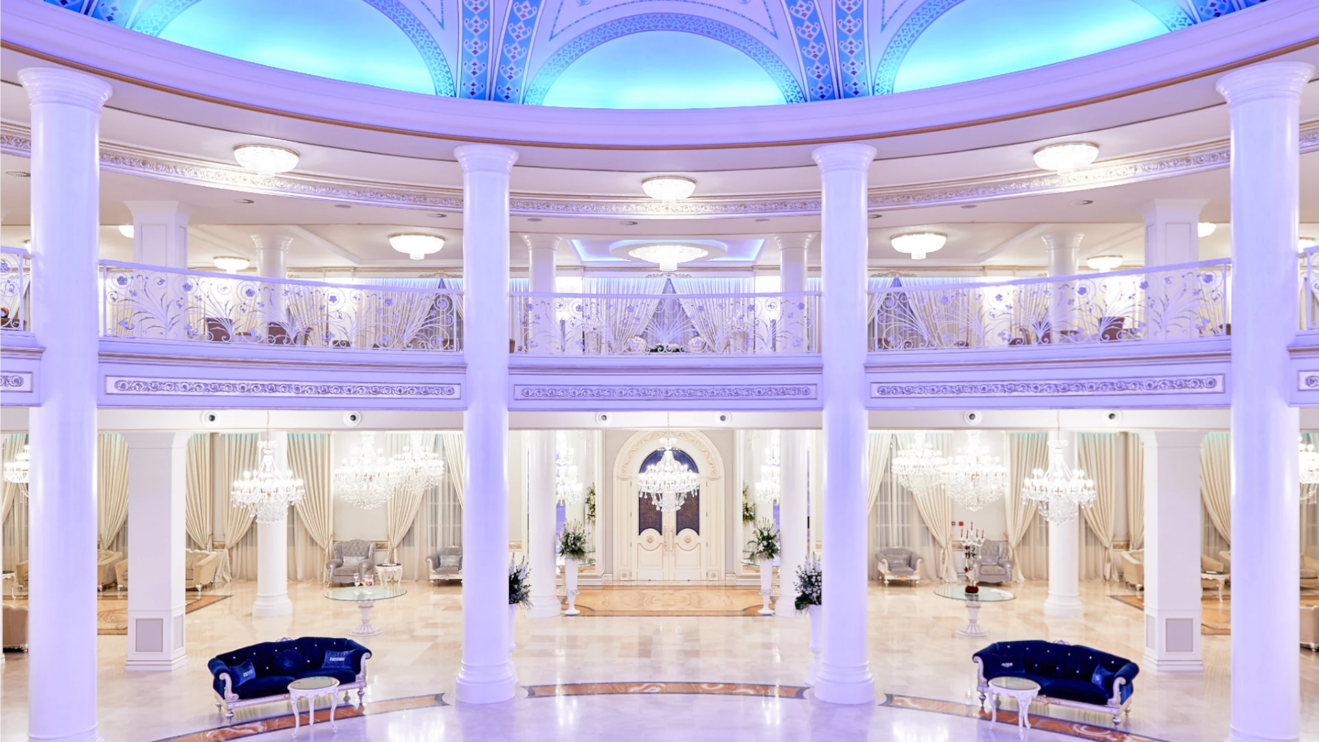 Avvolta dalla cupola affrescata, la Sala Belvedere è l’affascinante attico di Reggia dei Tessali. Accoglie con le sue tonalità chiare, impreziosite dai rivestimenti in marmo e onice, e la raffinatezza dei dettagli, uno spazio ideale per eventi intimi, cerimonie civili e momenti che chiedono eleganza e sobrietà.